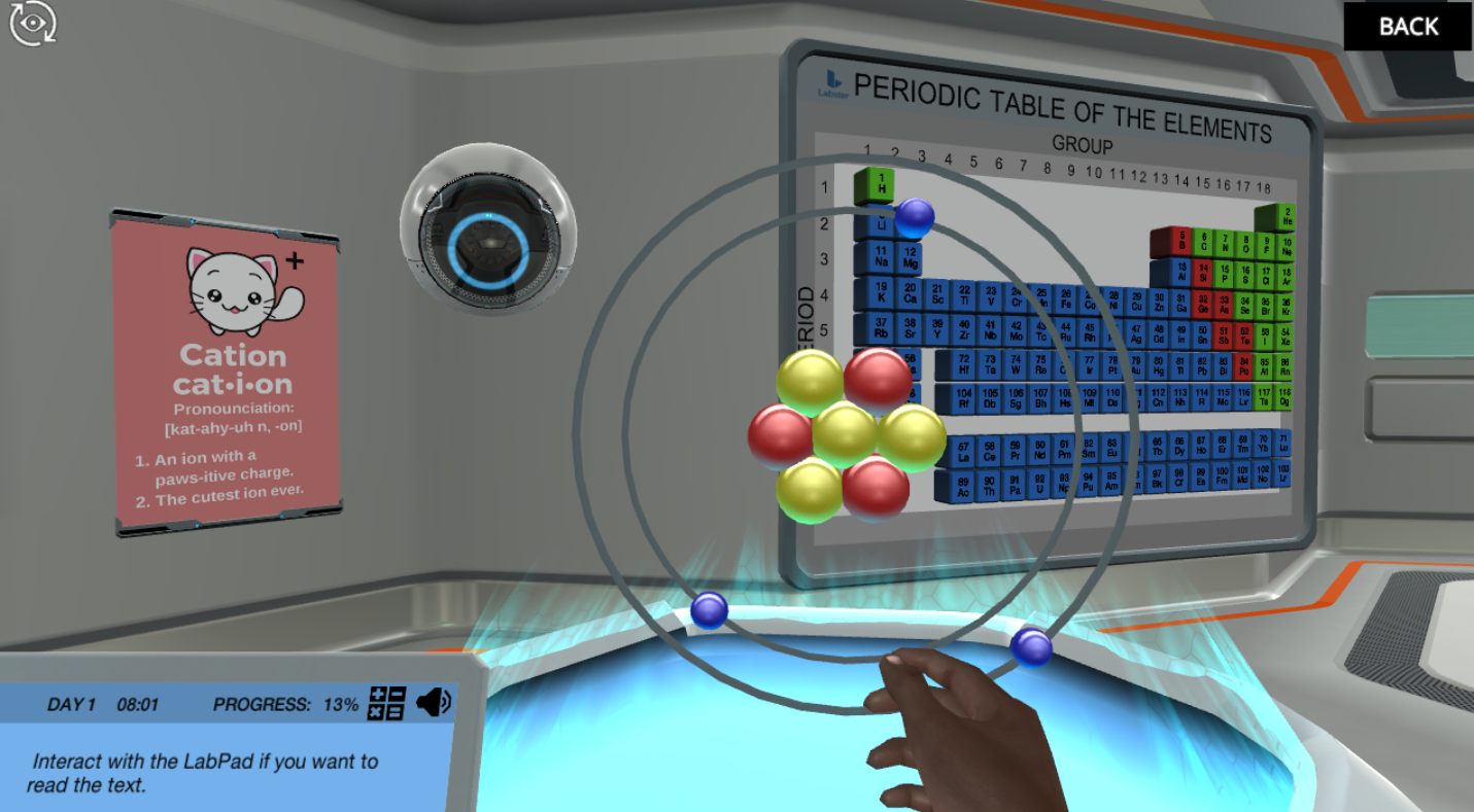 作为你任务的一部分,你将被传送到一个系外行星,独自探索,收集样本,并提出有关行星上存在生命的观察结果。回到实验室,你将研究你从系外行星带回的元素的性质。元素周期表将在附近为您提供建议和指导。