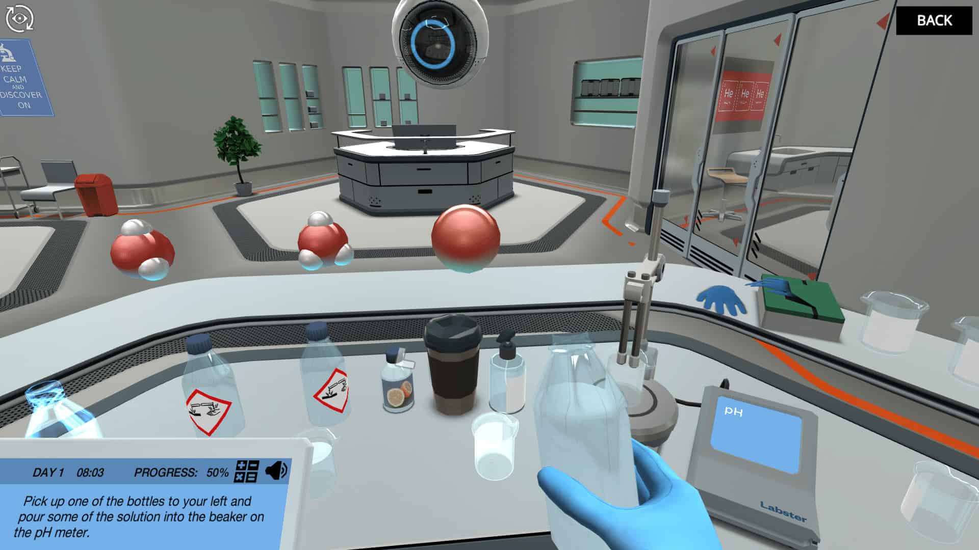 在酸和碱(原理)模拟中,你被意外地带回了系外行星Astakos IV。在这里,你将从一个高酸性湖泊中采集样本。您的任务是将样本与在家里、厨房或教室里找到的日常解决方案进行比较。