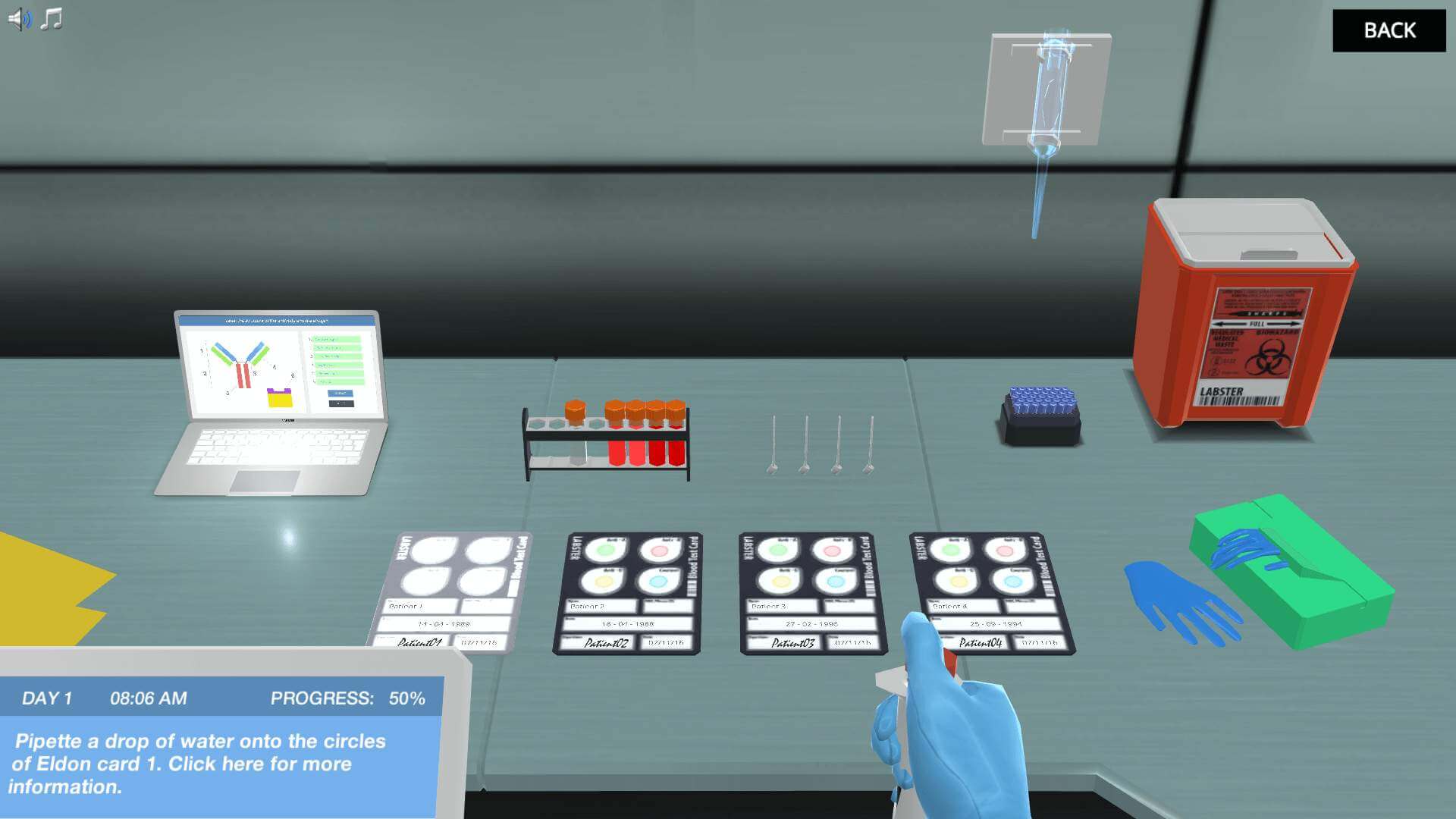 按照埃尔登测试的步骤来确定在几个病人的测试样本中发现了什么血型。了解抗原和抗体与血型的关系,并了解为什么将不同血型混合在一起会导致问题。
