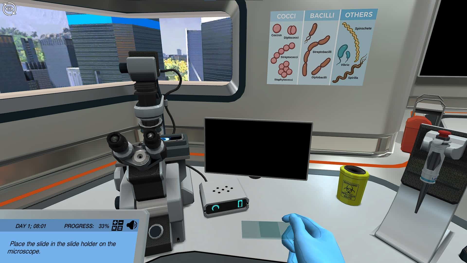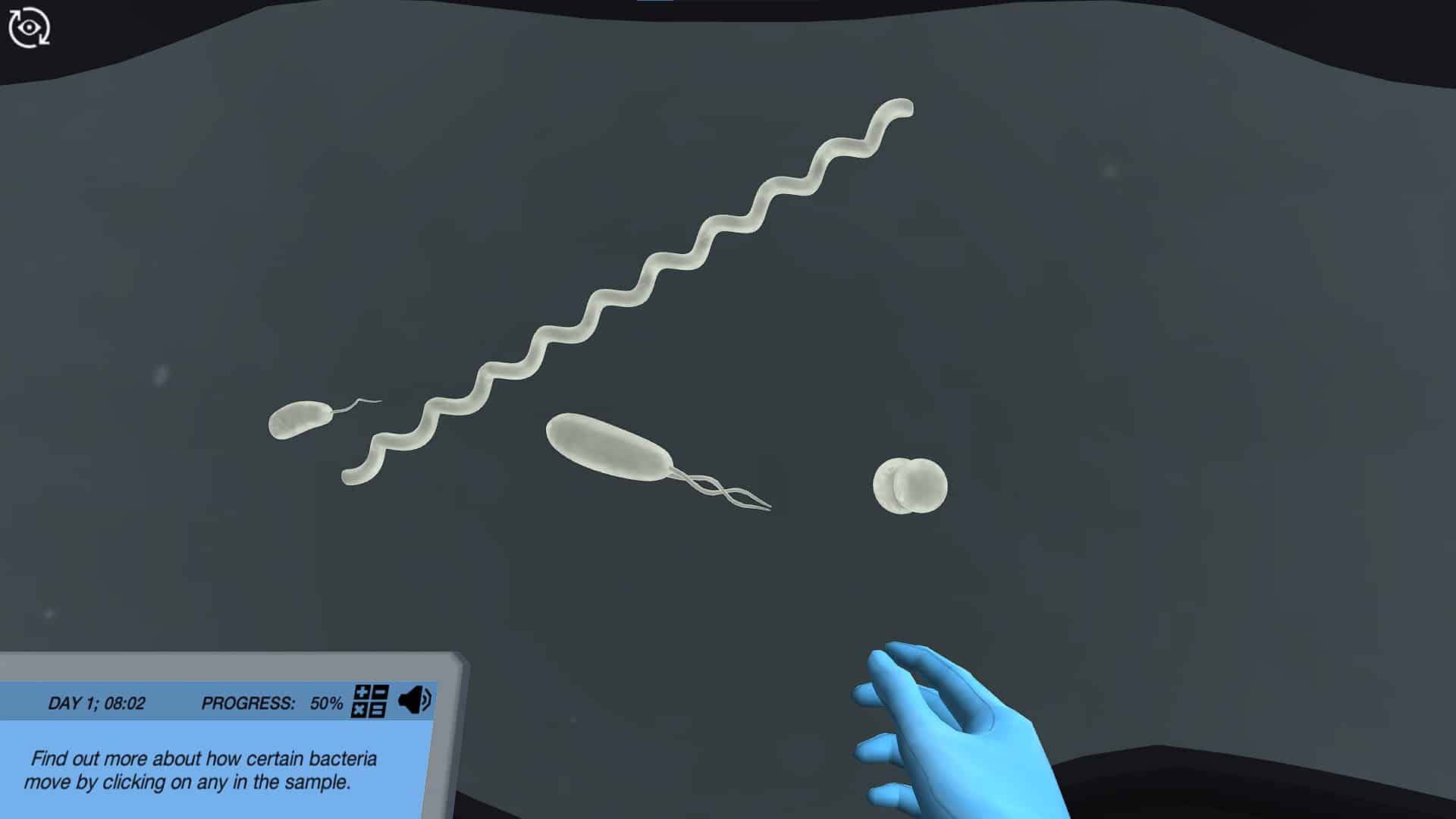 全球变暖导致南极洲的冰融化,导致在这种极端环境下生存下来的细菌被发现。在这个模拟中,你将了解细菌的形状和运动。为了观察细菌样本,你将使用一个有暗场和亮场设置的显微镜。然后,你将跳进样品,以得到一个近距离的观察。