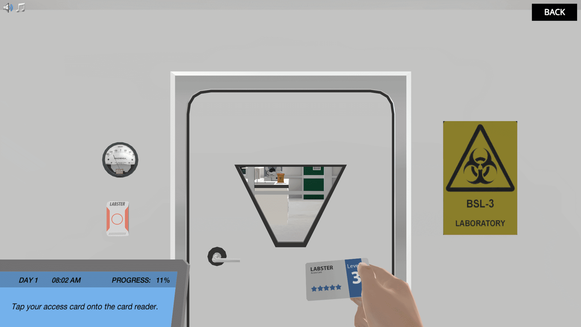 在这方面,遏制是指各机构为安全操纵这类病原体而提出的要求。在此模拟中,您将能够体验一个3级控制(生物安全3级或BSL3)研究实验室。