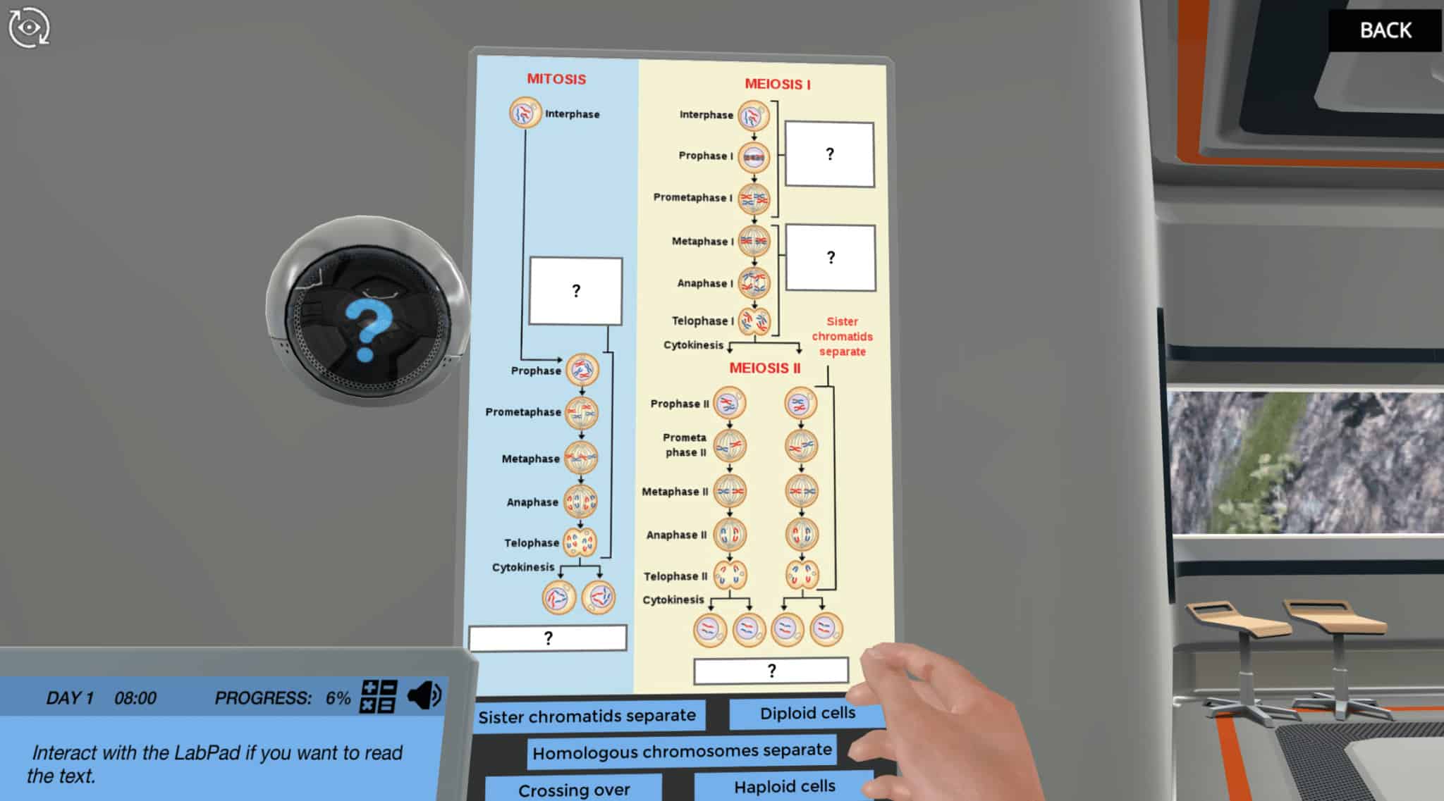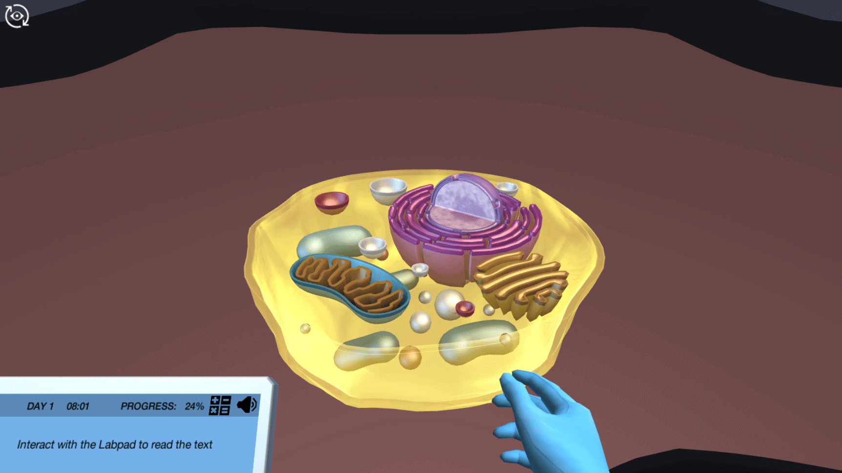 接下来,您可以选择潜入血液样本以了解DNA如何在细胞的沉浸式动画中包装。在细胞核内发现DNA,然后一直从染色体中放大各个核苷酸。如果您已经熟悉此,您可以立即继续下次实验!