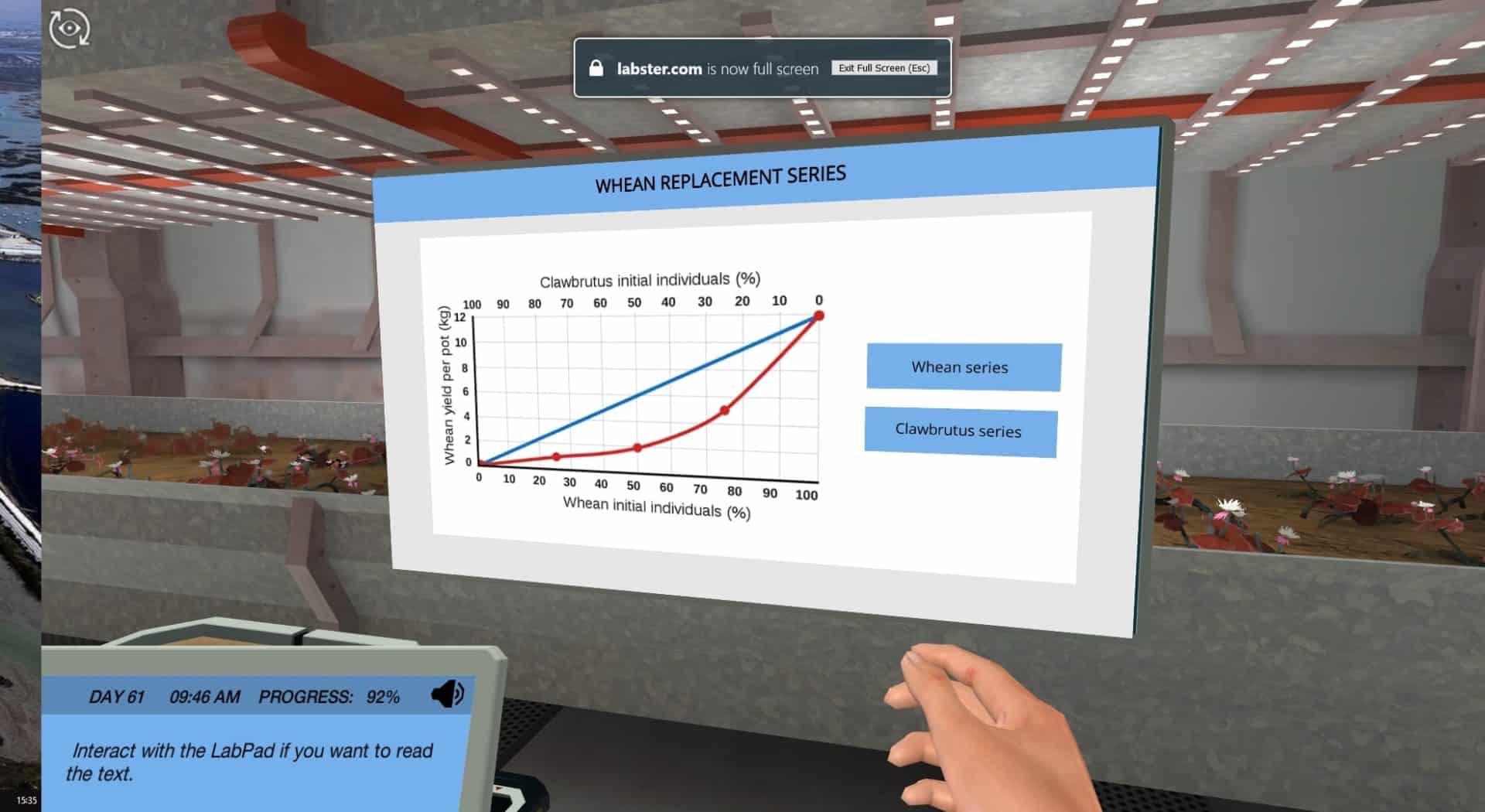 你的下一个任务将是确定物种之间是否存在竞争,如果存在,如何量化竞争。你将在Whean的农田里工作,在这个星球上新的、令人惊叹的温室里工作。在现实生活中,你可能需要几个月的时间让植物生长,但在这些虚拟设施中,你可以在几分钟内量化物种之间的竞争!