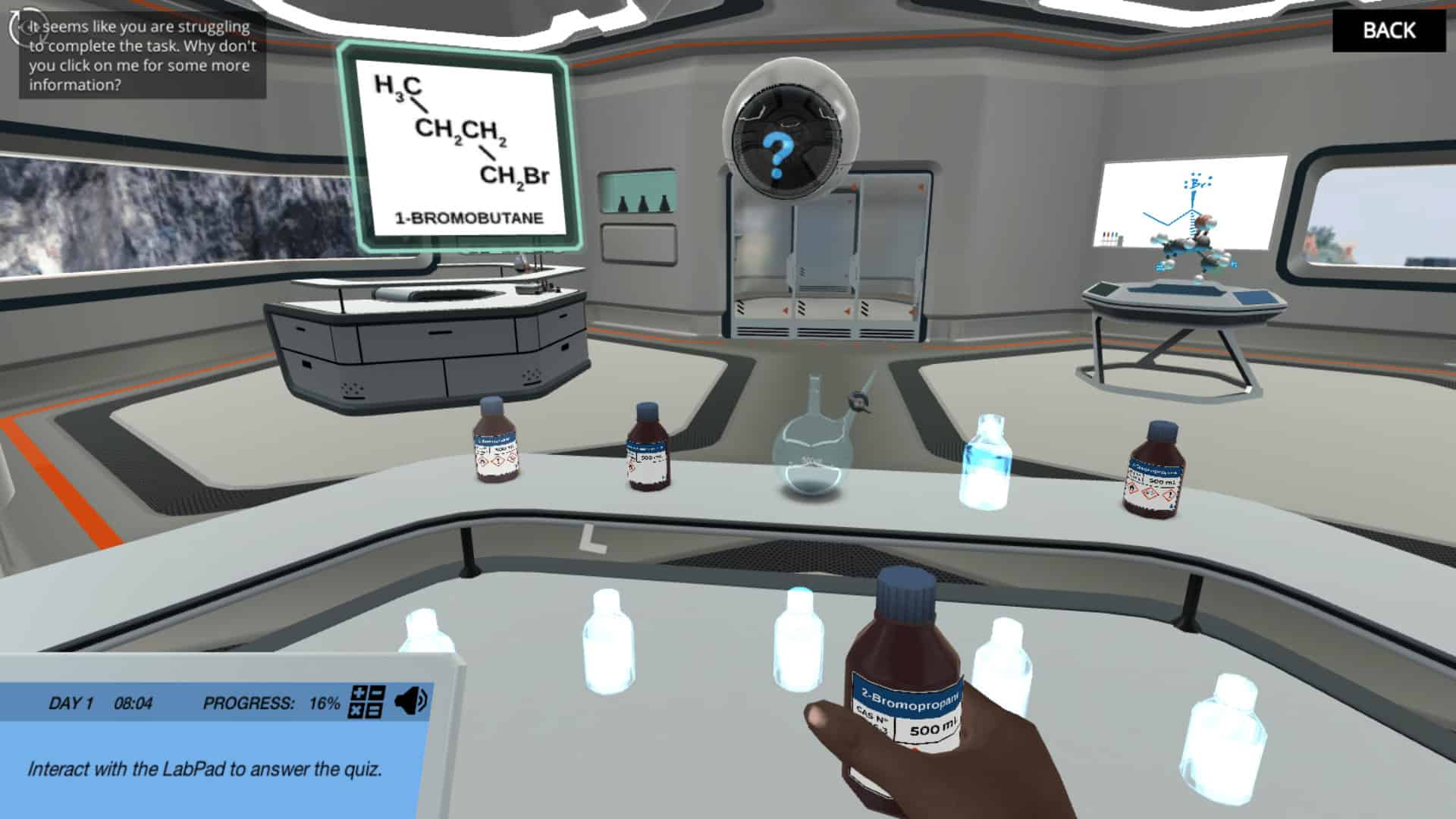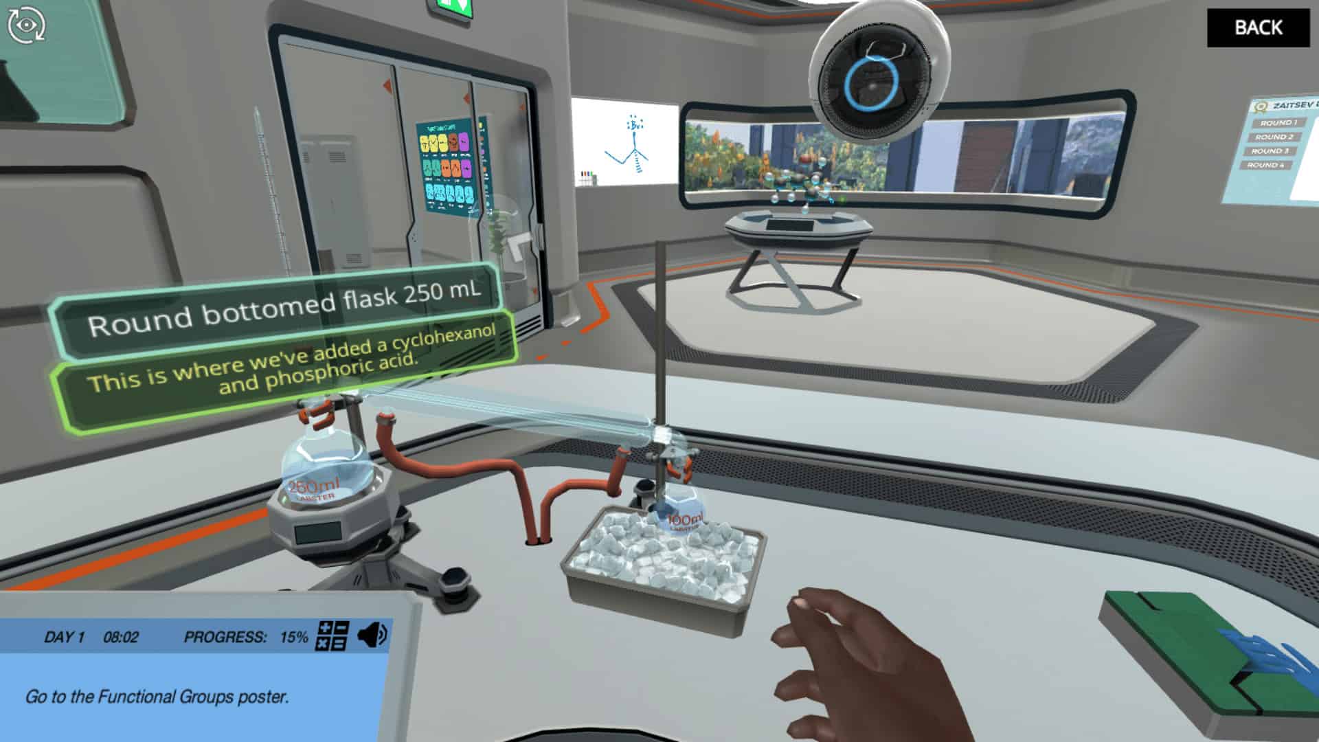 回到主实验室,您将刷新您的有机化学知识。在理解金的反应稍微好一点后,您将潜入两种主要的消除反应类型:E1和E2。在通过探索和互动锻炼挑战判断ZAITSEV规则之前,您将能够进行操作,以便操纵两种反应的机制。您还需要评估哪些反应物更容易经历两种反应。如果你得到这个,你可能会得到摇滚明星的成就!