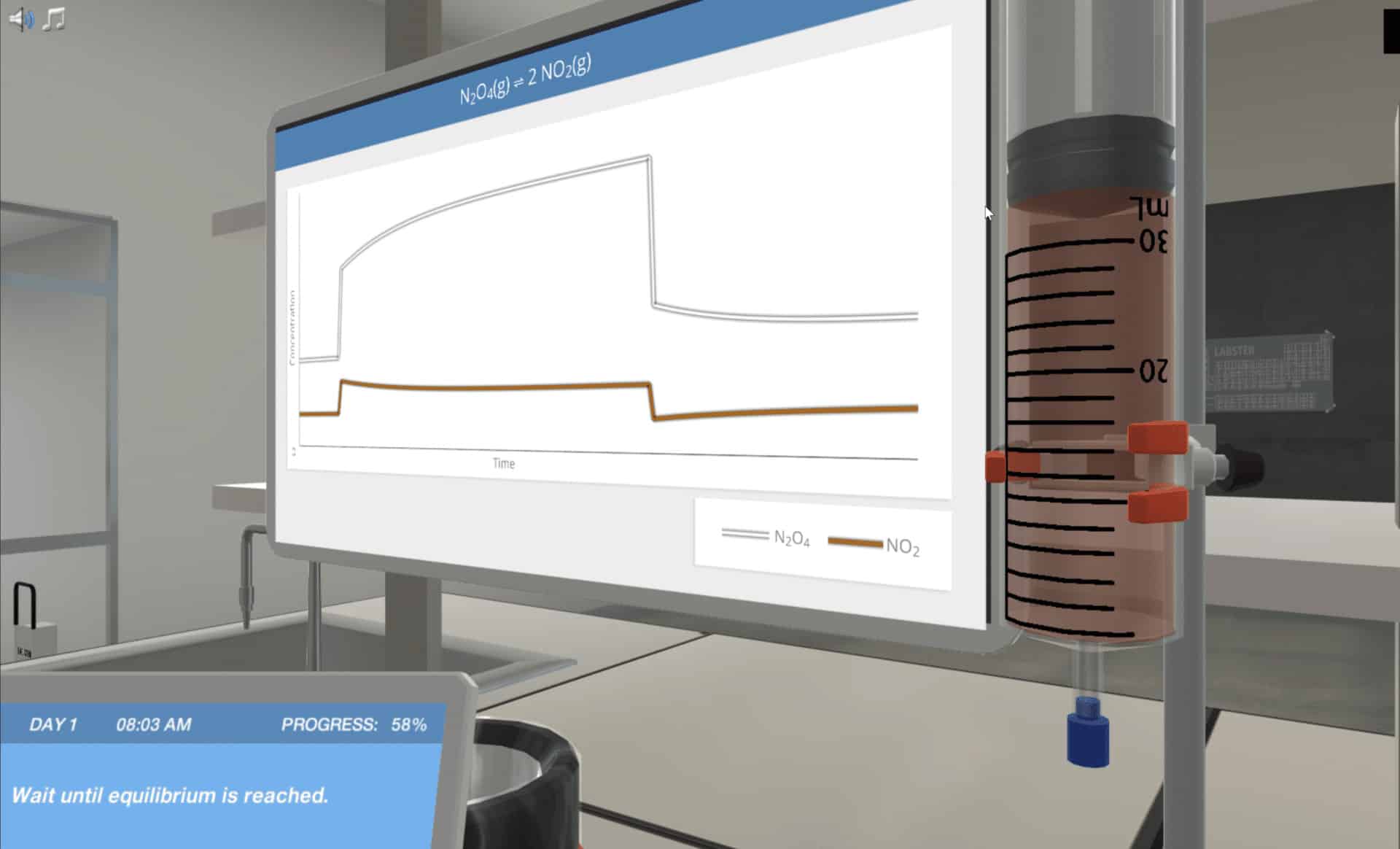 在化学中有几种不同类型的平衡:热力学平衡,扩散平衡,热平衡,等等。在平衡模拟中,你将了解一般的化学平衡,并帮助一位著名的科学家防止全球饥荒。你将学习如何在实验室中影响和预测可逆反应的方向。