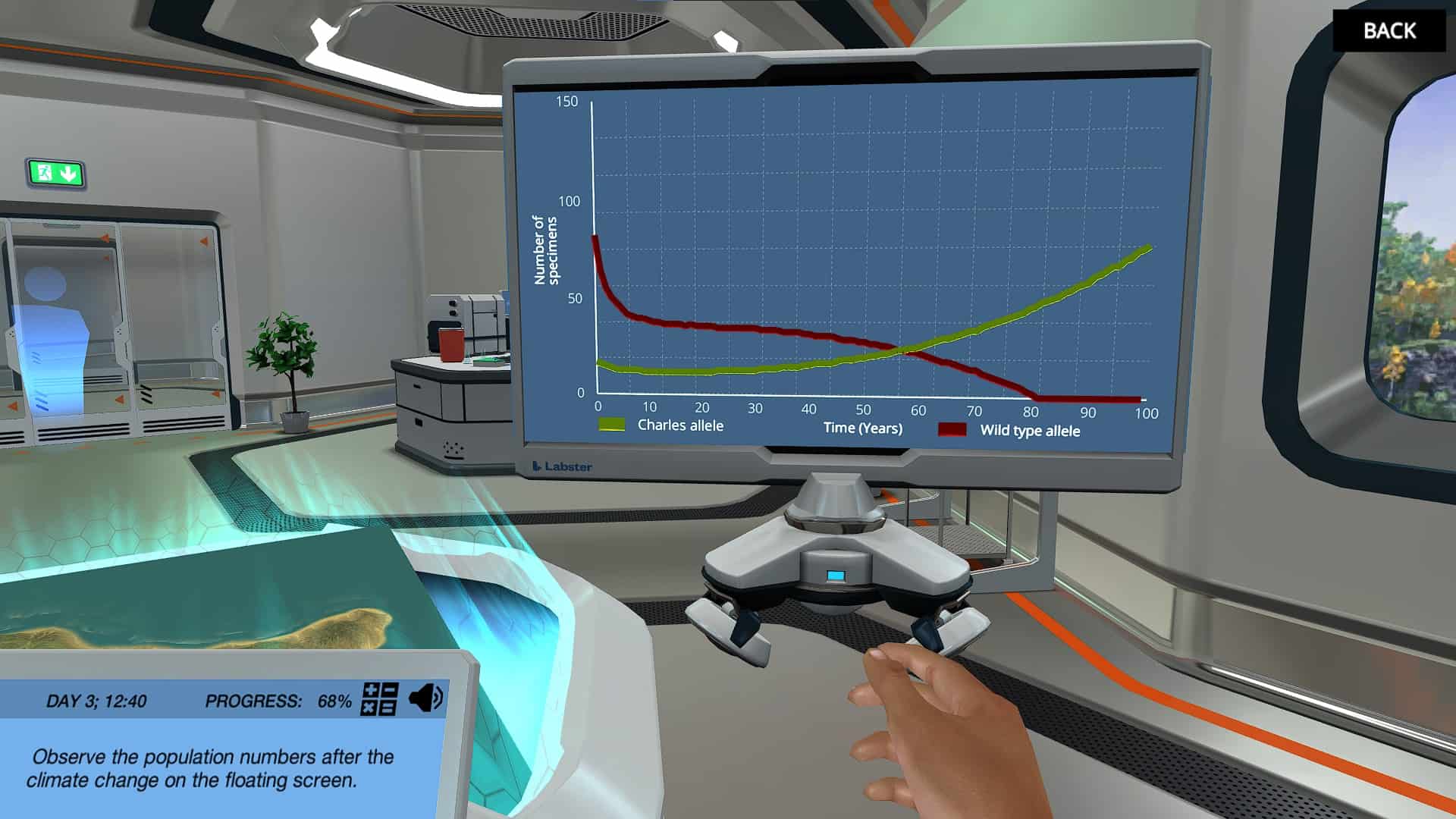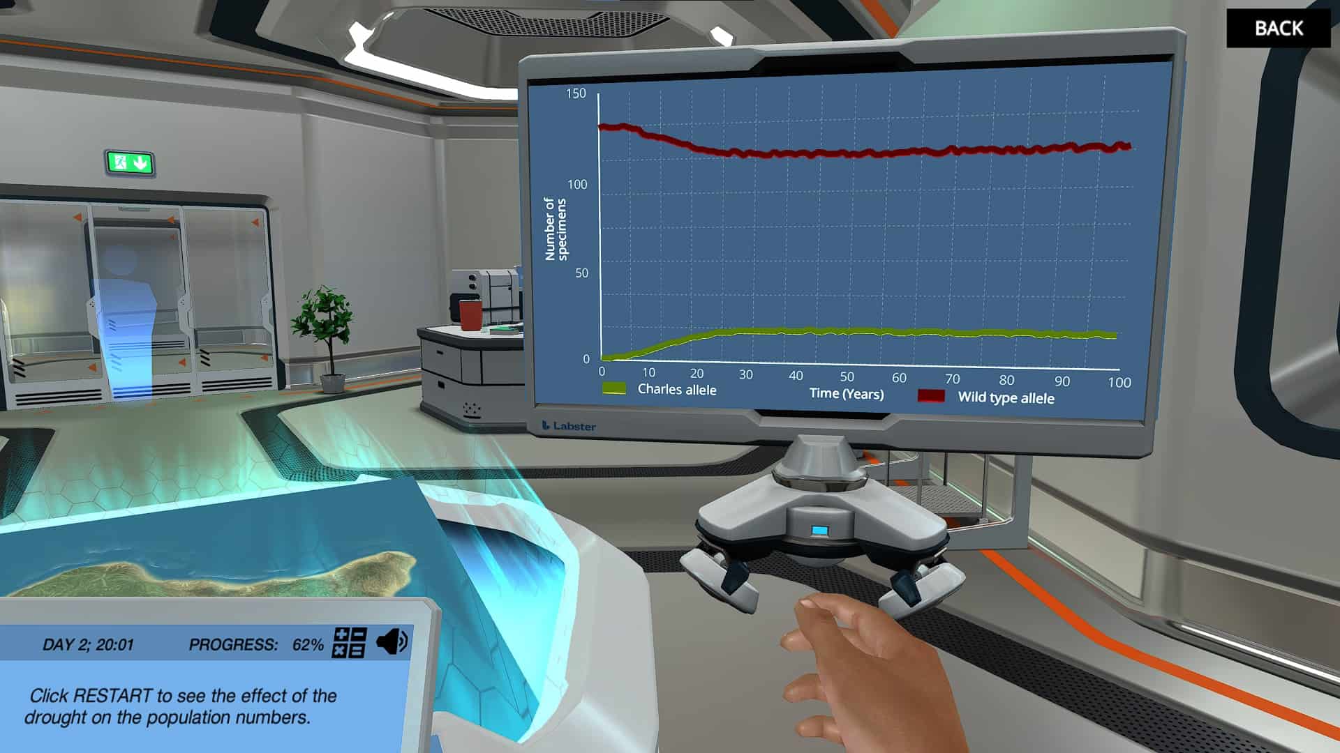 从你的虚拟岛屿上的两只巴基鲸开始。观察种群规模呈指数增长的过程,并观察种群随时间的遗传变化。了解什么资源限制了岛上的人口规模。利用哈迪-温伯格原理预测多代人群中的等位基因频率。这个岛还会是巴基鲸的避风港吗?