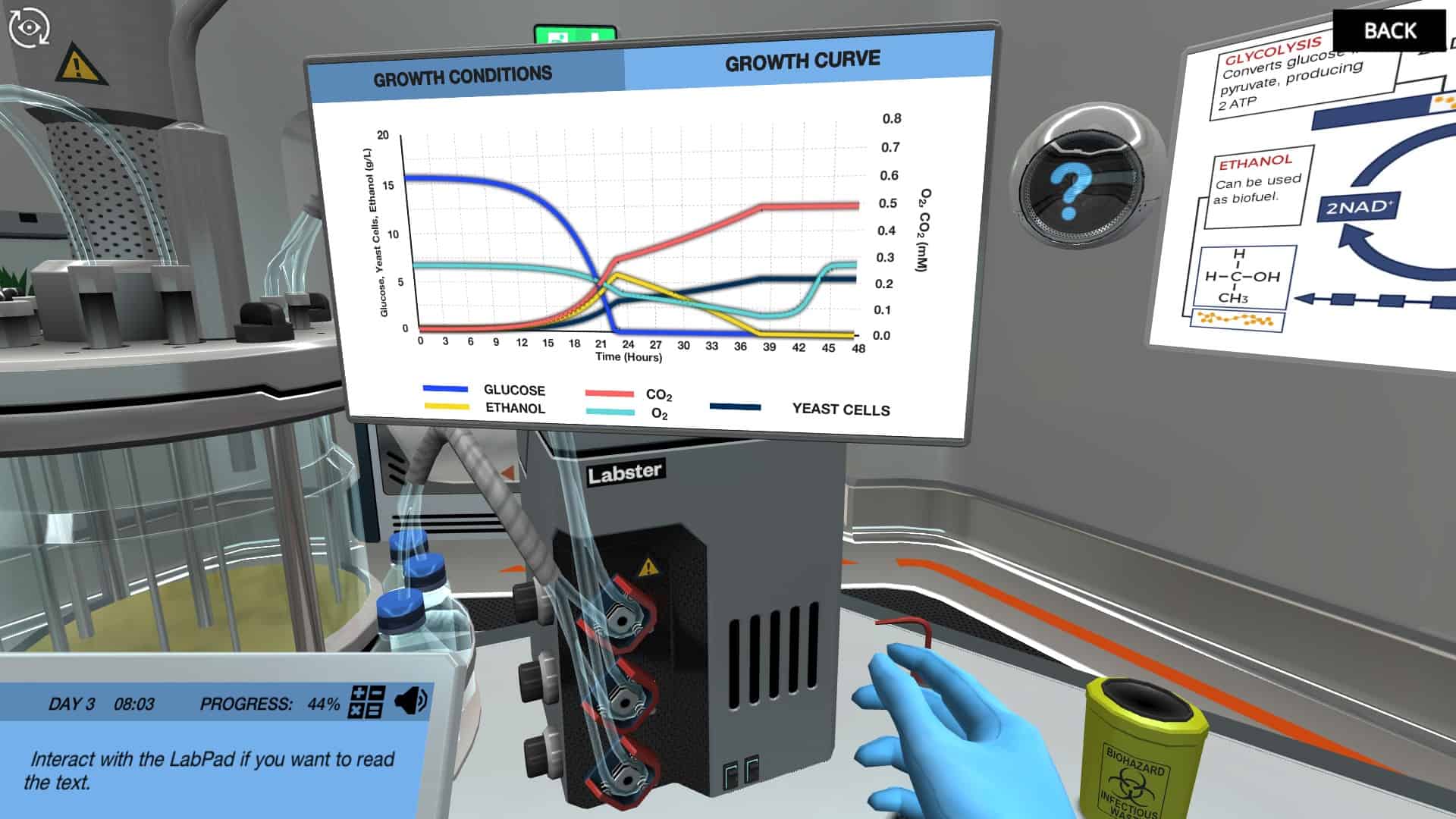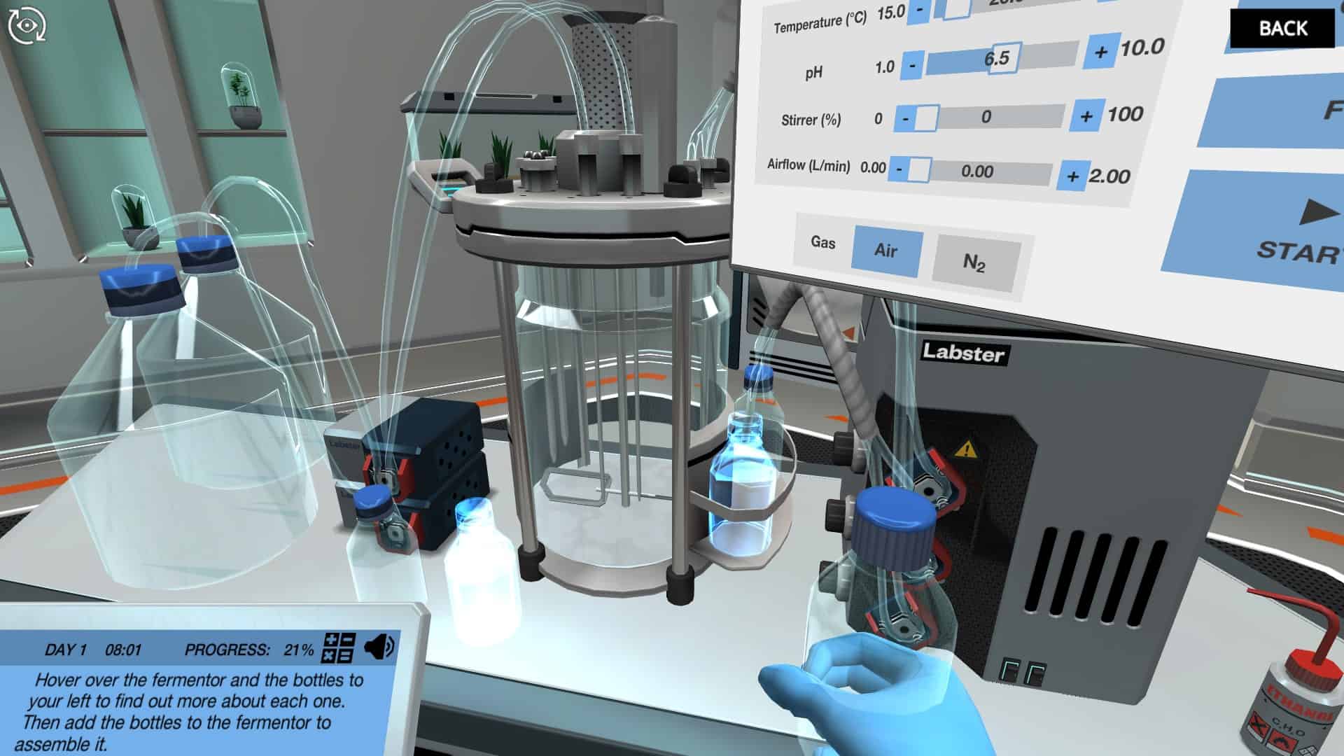 因为您是在虚拟实验室中工作,所以您将能够非常快速地收集数据。这使您可以测试许多不同的生长参数,并看到不同组合的温度,气体组成,搅拌水平和pH值在几分钟内的影响。