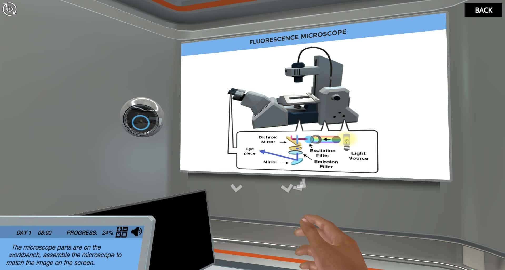 组装荧光显微镜,发现关键组件如何帮助创建高对比度图像。在这个模拟中,你将学习如何使用荧光显微镜来分析肠组织样本。你会发现什么是荧光,荧光显微镜在生物学中的应用和局限性。样本已经为你准备好了,你的任务是确定肠内的细胞是否感染了病毒。