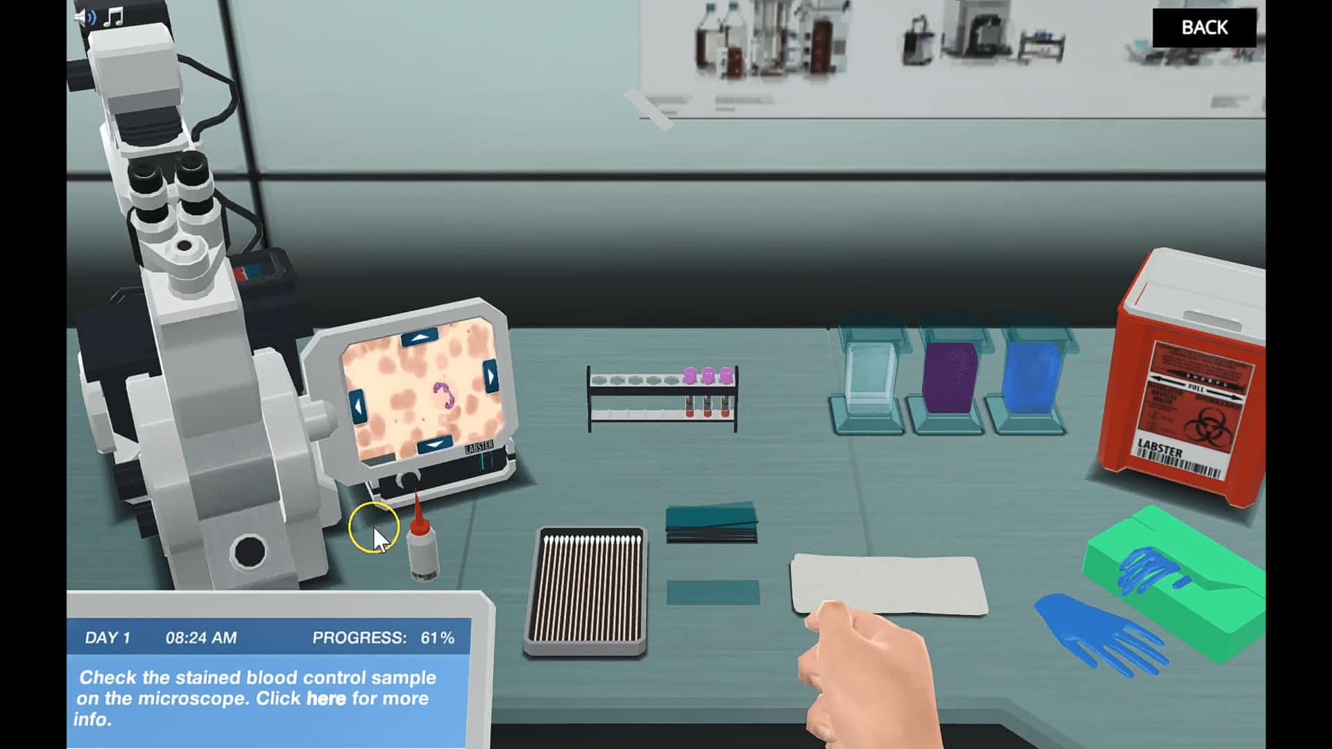 Not only vampires are obsessed with blood – hematologists love blood as well! In this simulation, you will generate complete blood counts and prepare blood smears of control and patient samples to diagnose various blood disorders in three patients. Dive into the inner workings of the different blood components with immersive 3D animations, where you will get acquainted with the morphology and function of red blood cells, white blood cells, and platelets.