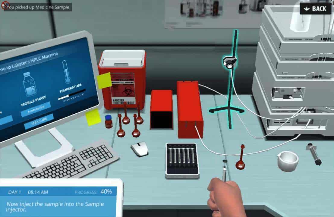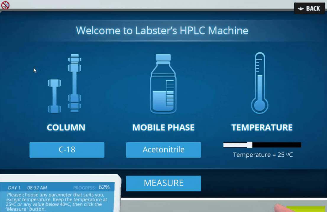 In the HPLC simulation, your first task is to select different mobile phases and different columns to run your experiment. You will then separate the components of a drug and measure concentrations. Next, compare the separation profile using different mobile phases and columns. During the experiment, you will be able to visualize the lipophilic interaction between analyte and both the stationary and mobile phase by watching a 3D animation. Quiz questions throughout the lab check will check your understanding of the HPLC technique.