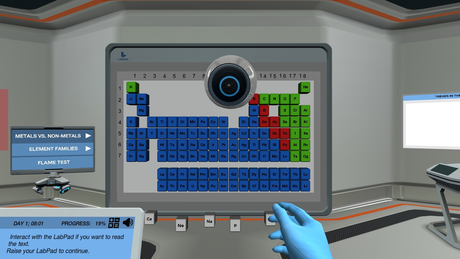 的模拟,一个特殊的访客will be coming by the lab, and she needs you to help her understand the atomic properties and trends of the periodic table. Will you be able to explain it to the visitor?