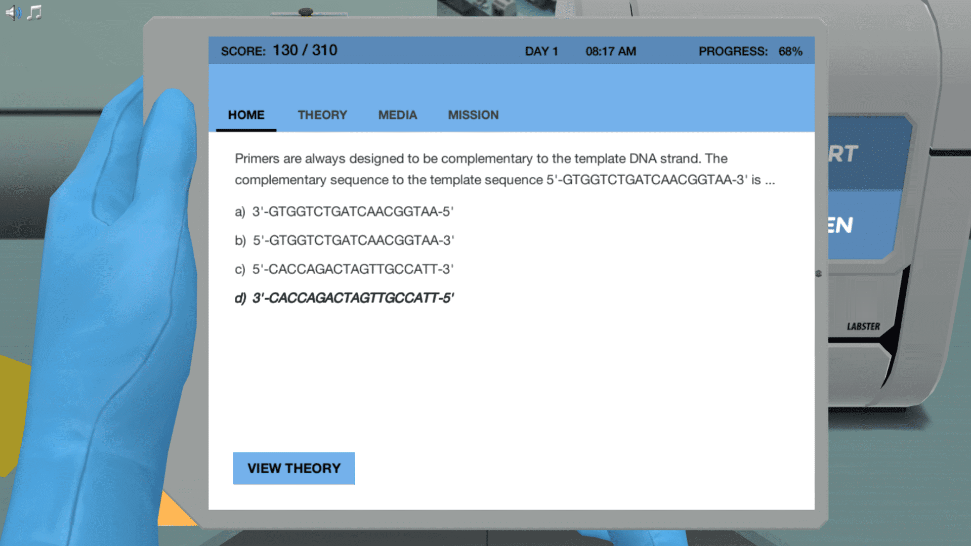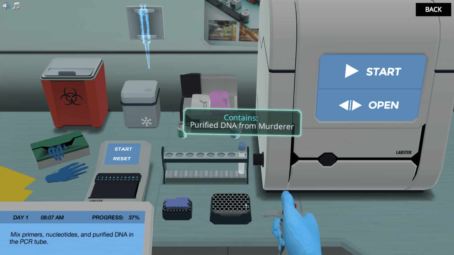 在聚合酶链反应(PCR)模拟中,你会被直接扔进发生谋杀案的犯罪现场。为了调查犯罪现场你的首要任务是收集血液样本希望凶手留下了他们的DNA痕迹。