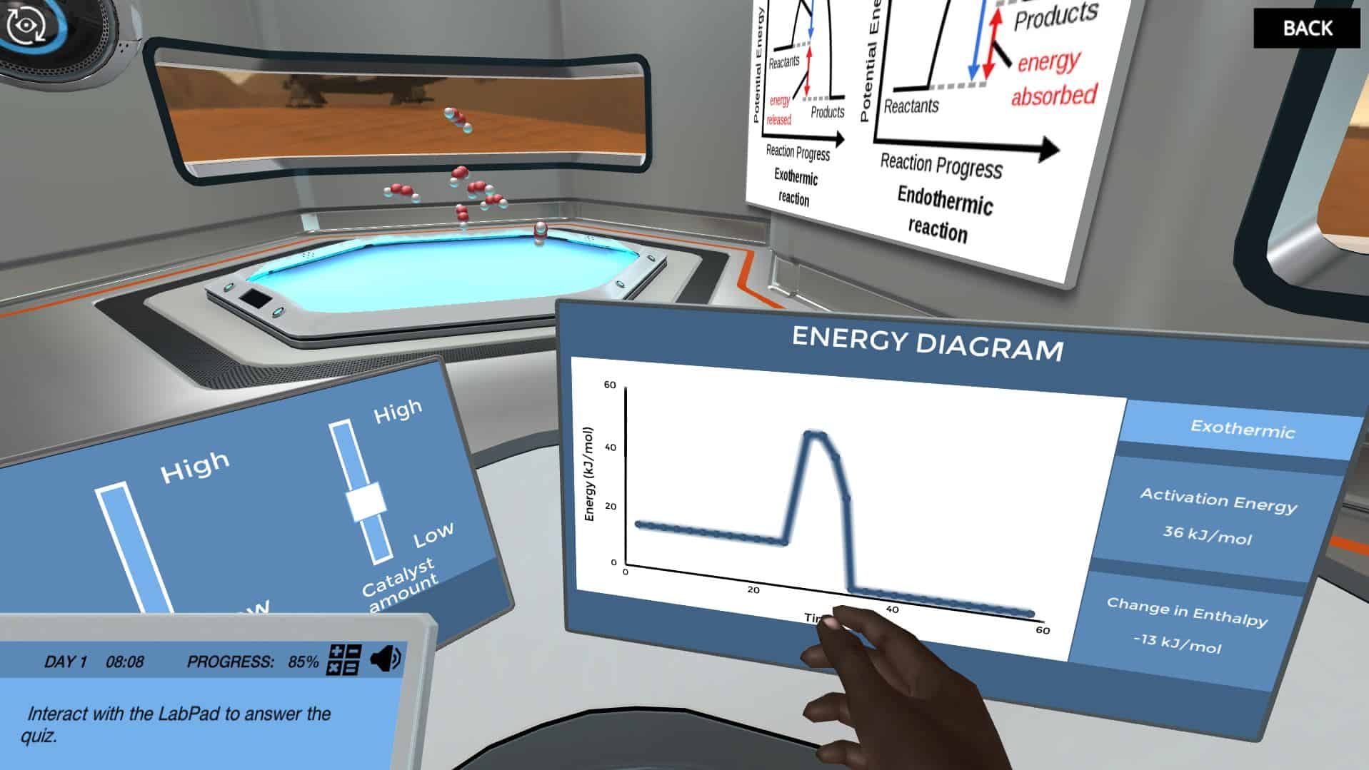 和一号博士一起去我们的外星实验室,在那里我们正在为传送器争取足够的推进力。我们需要你搞清楚动力学并优化我们使用的燃料的化学反应,这样我们才能继续我们的实验。