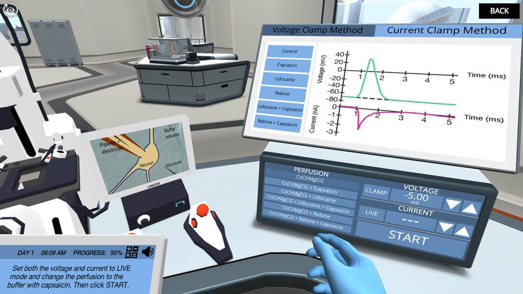 How do anesthetic drugs work? In this simulation, you will learn the basics of sensory transduction by testing and comparing the mechanisms of action of two anesthetic drugs. Explore which stimuli activate different types of sensory neurons and behold the flow of ions inside an axon. Perform a patch-clamp experiment to analyze how the anesthetics impact the pain transduction in the nociceptors, and confirm the results by performing somein vivoexperiments before selecting the best pain killer for your friend.