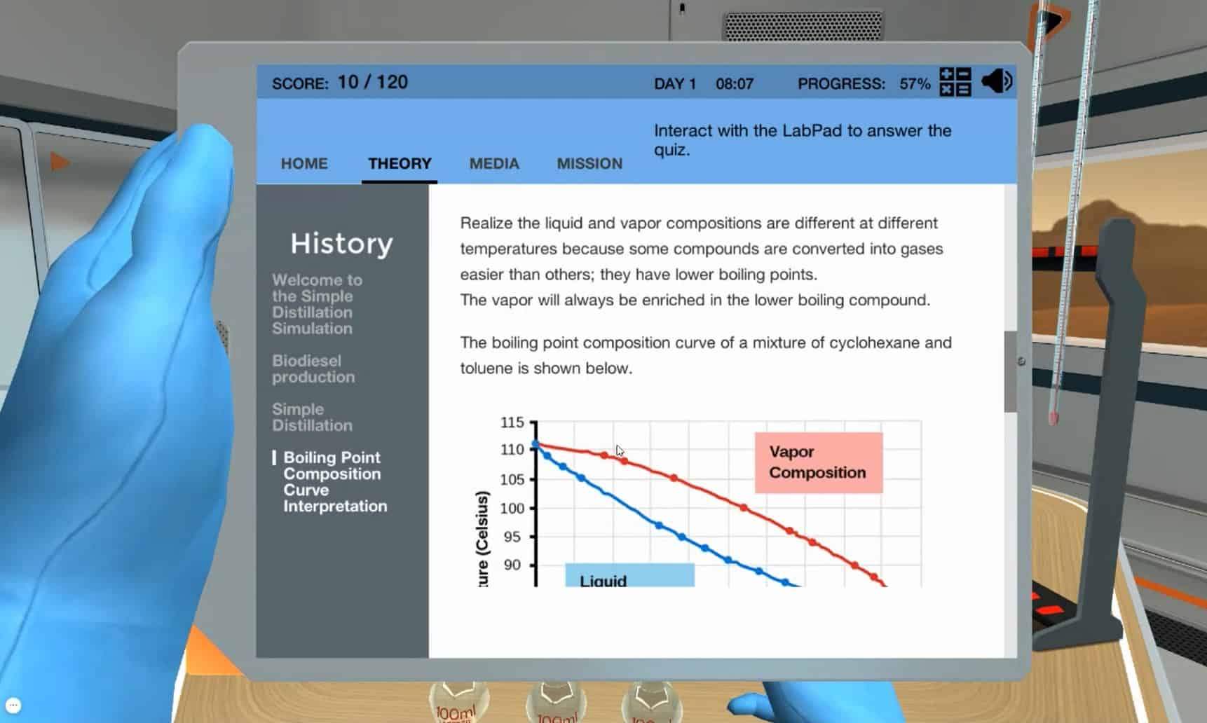一旦你开始蒸馏,你就能实时观察温度和体积的关系。在实验过程中,你需要收集不同的样品,Dr. One会给你提供沸点组成曲线,这样你就可以了解在蒸馏装置和收集瓶的蒸馏过程中发生了什么。