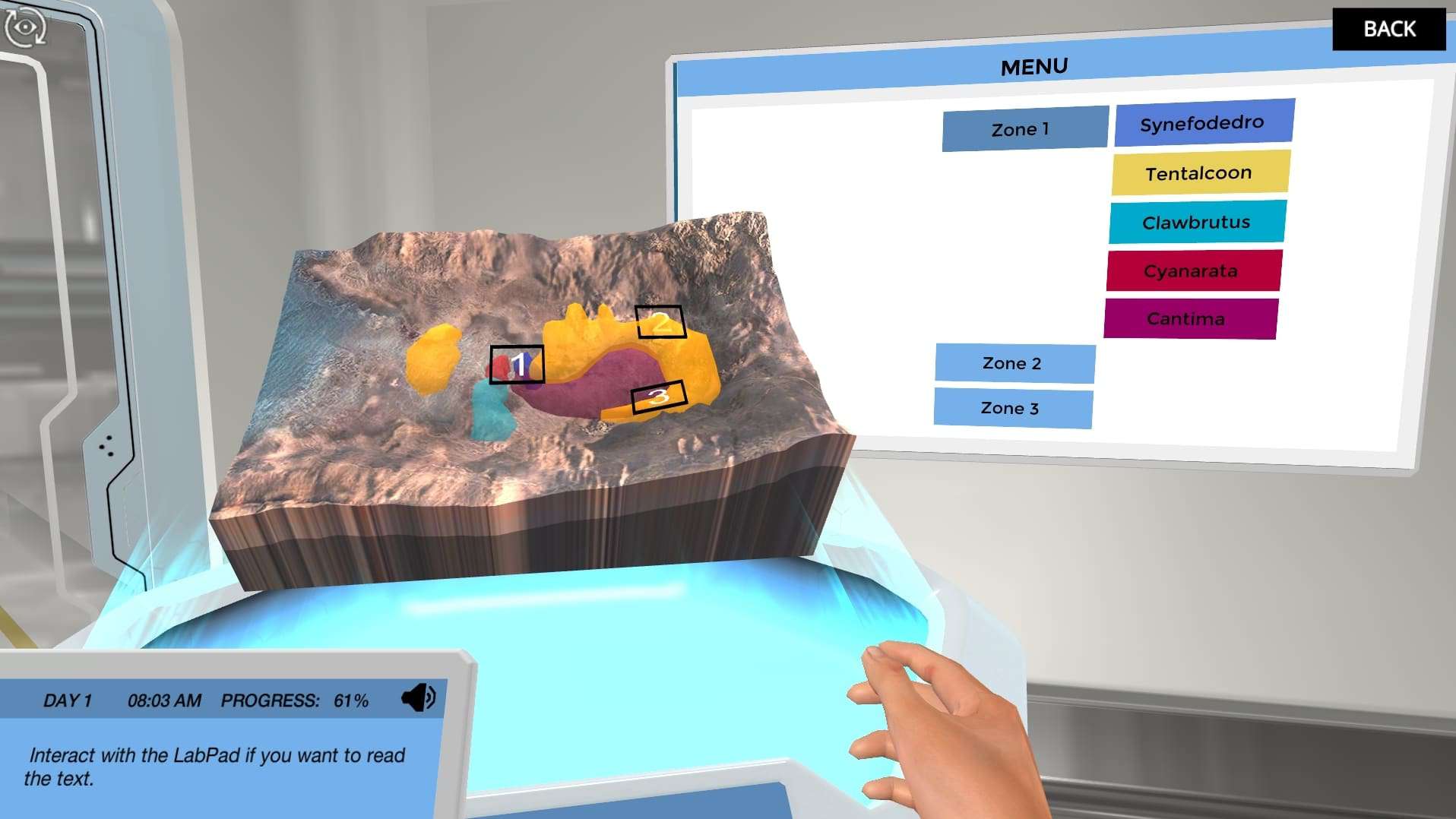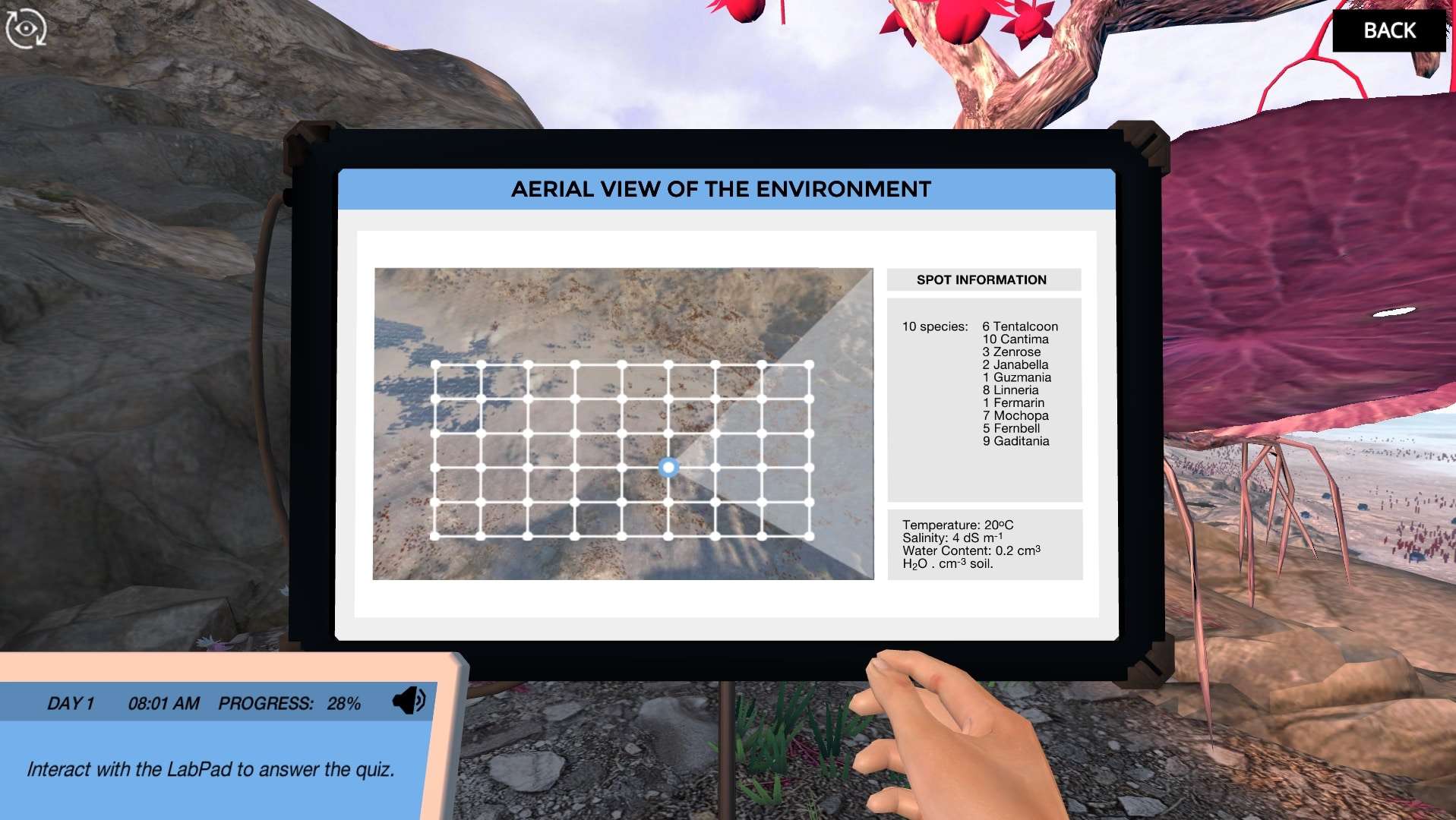 你将从物种和环境变量中收集现场数据,并将它们转移到Labster全息表中。在全息表上,您将能够分析通过在您正在调查的地形的3D全息模型上使用地图层分析所收集到的所有信息。您还将分析不同变量的分布,甚至能够跟踪许多不同物种在该地区的位置!